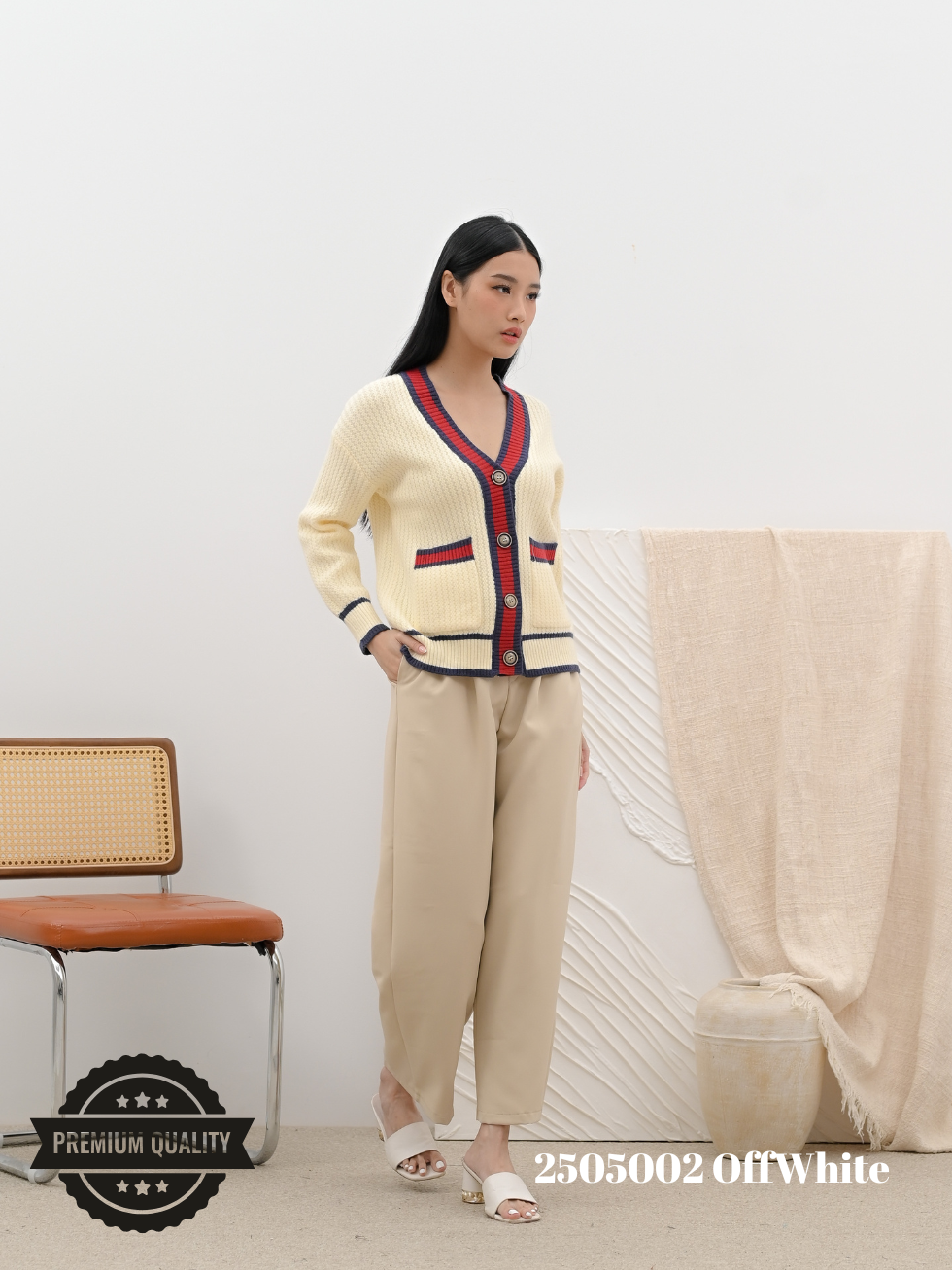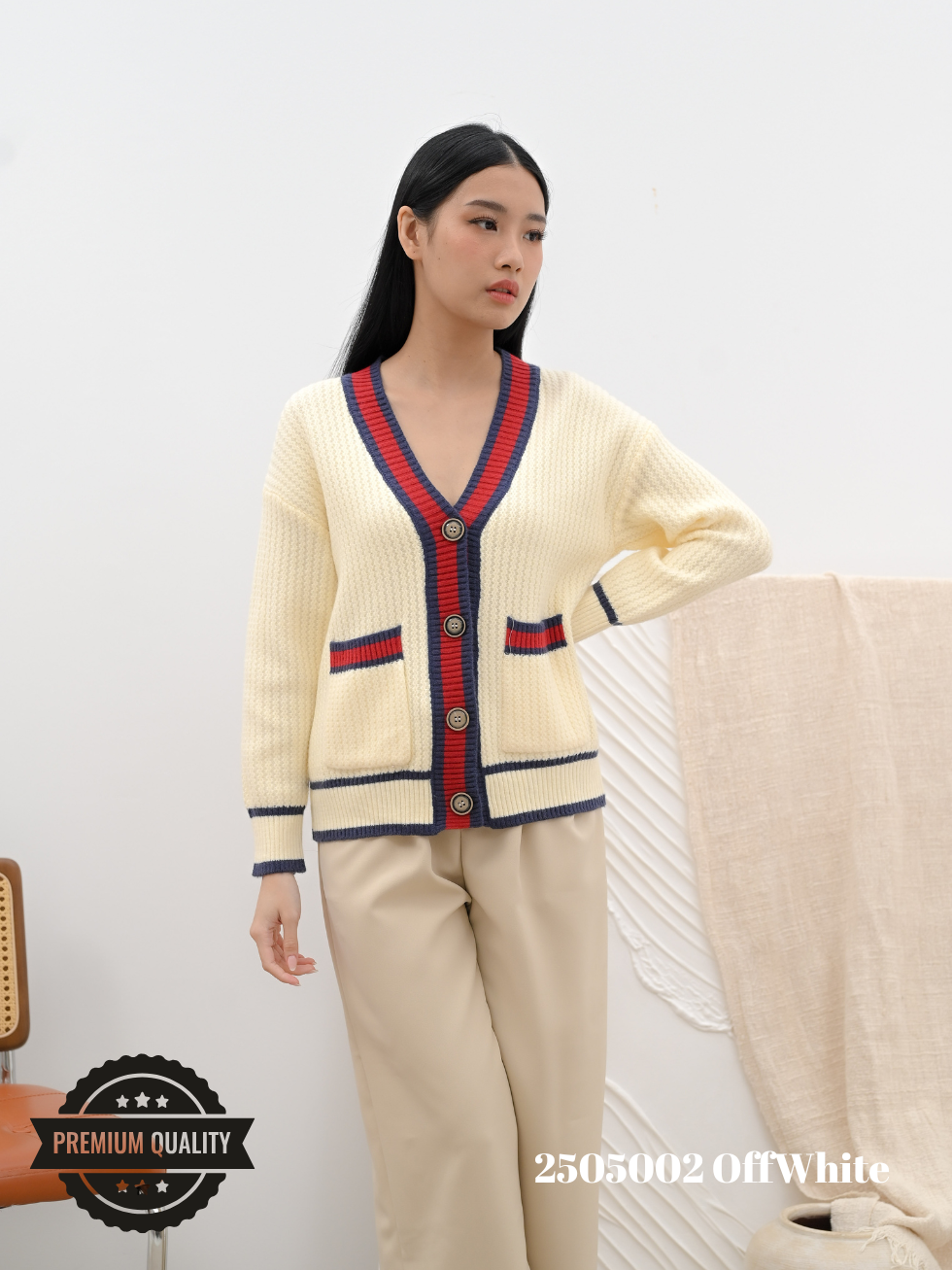 Cammomile 2505002 Cardigan Rajut lis merah Lengan panjang Korean style