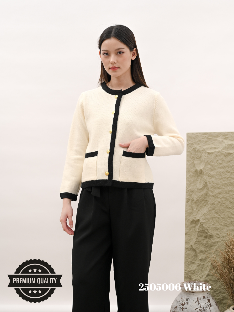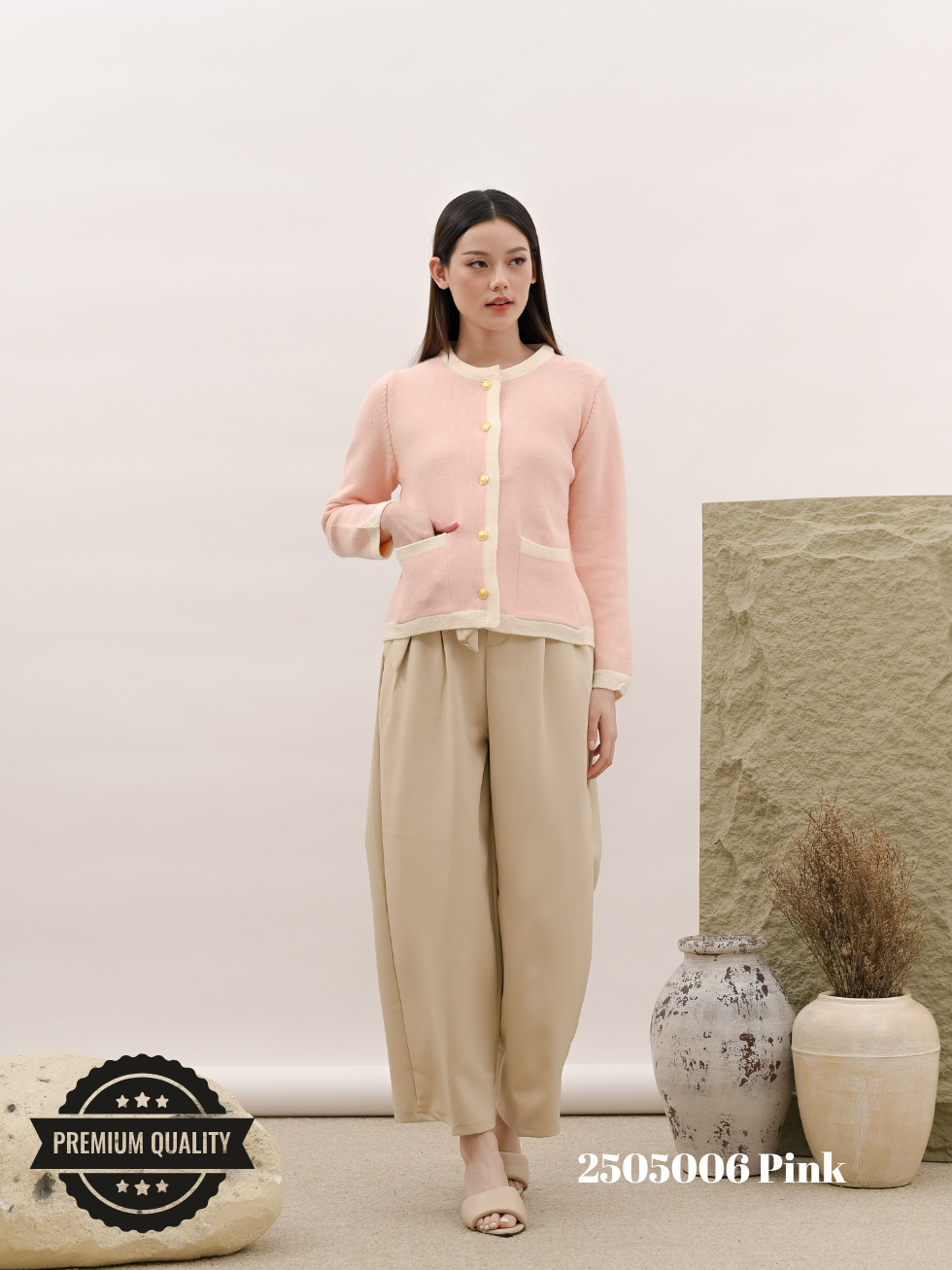 Cammomile 2505006 V26 Cardigan rajut tebal kancing gold