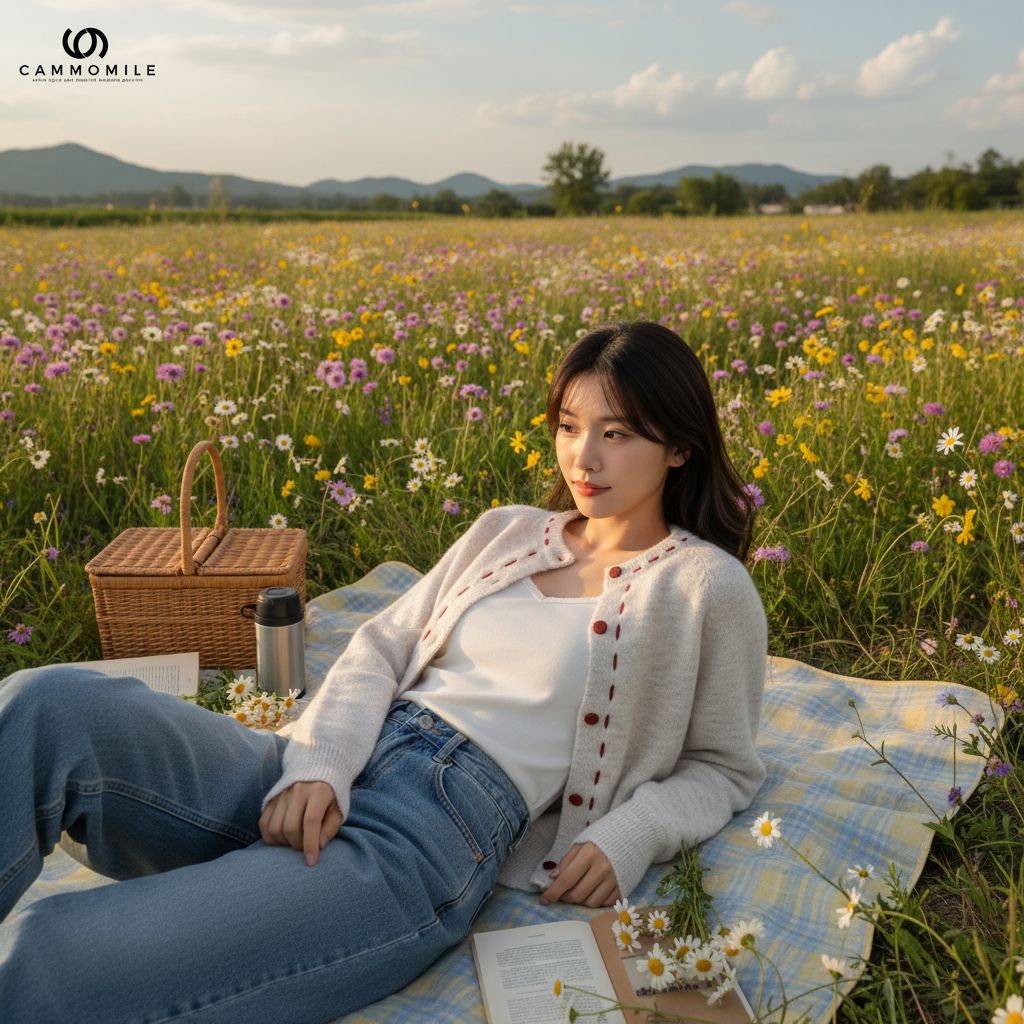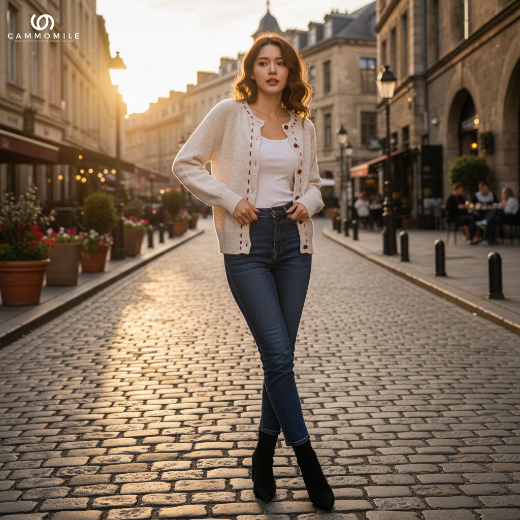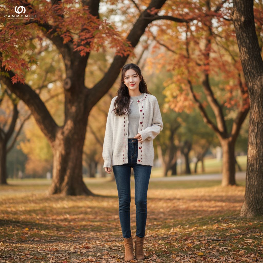 Cammomile 2505015 Cardigan rajut lengan panjang stiching