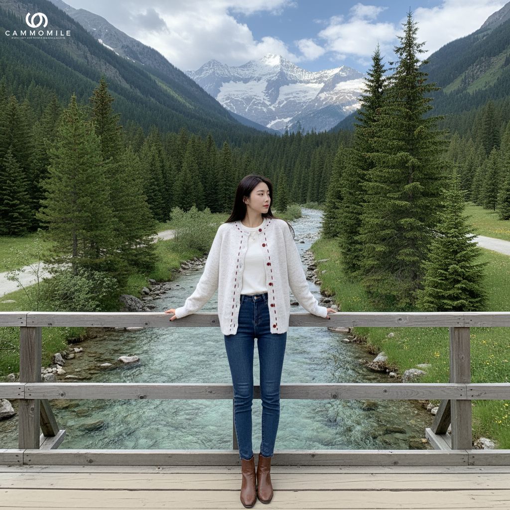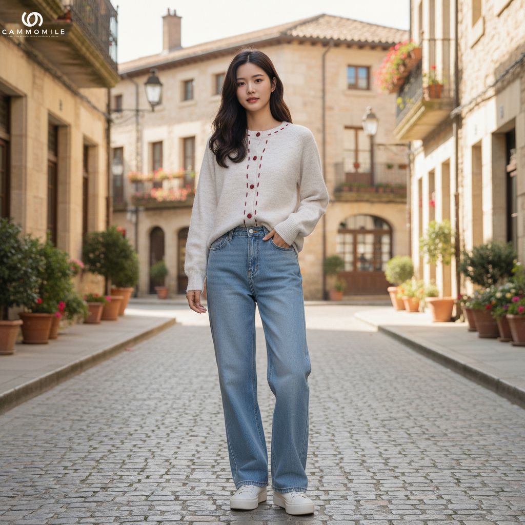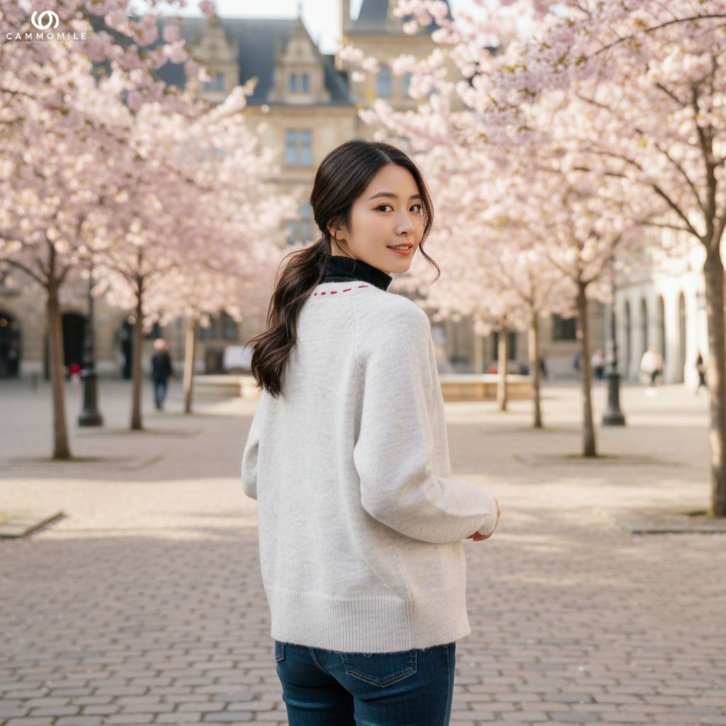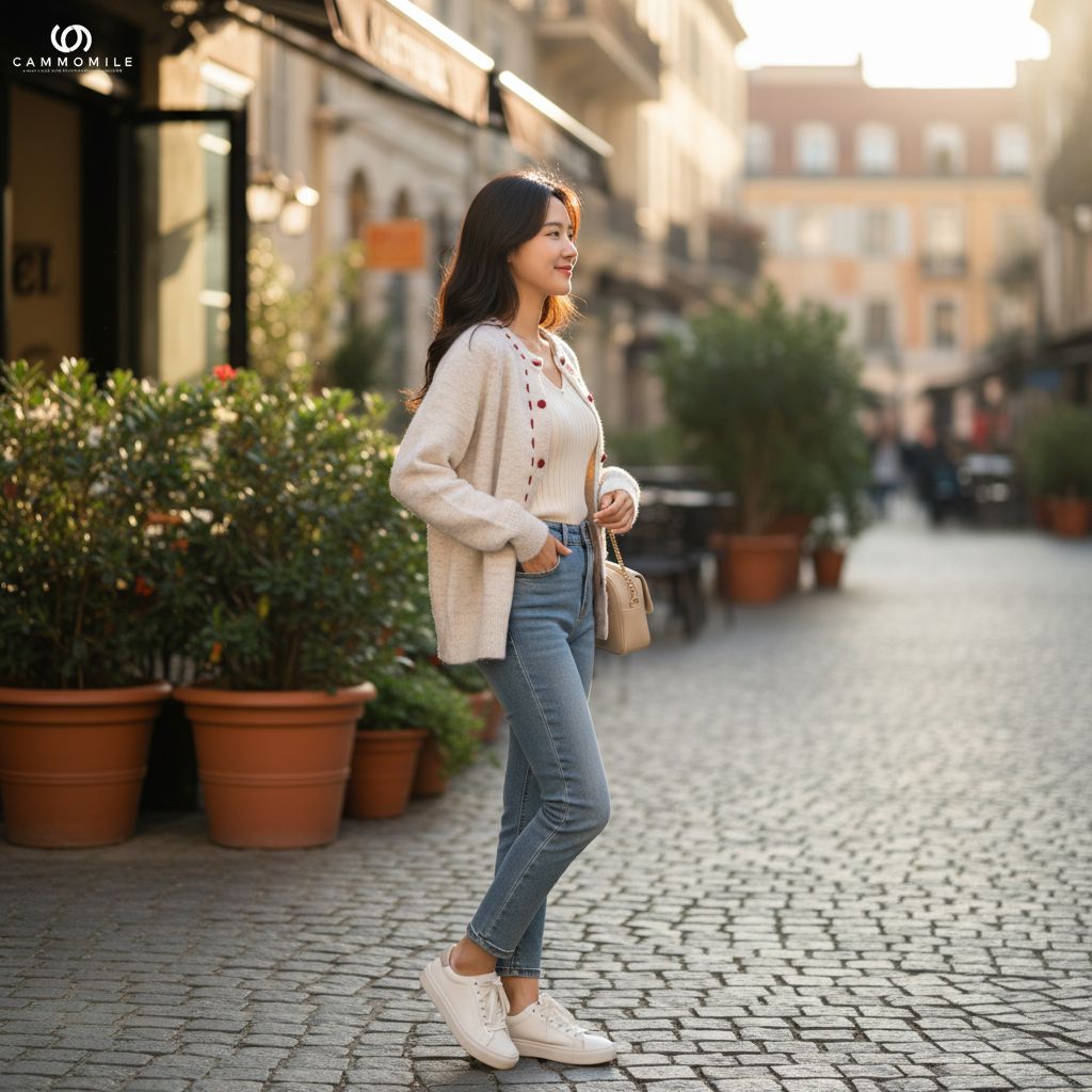 Cammomile 2505015 Cardigan rajut lengan panjang stiching